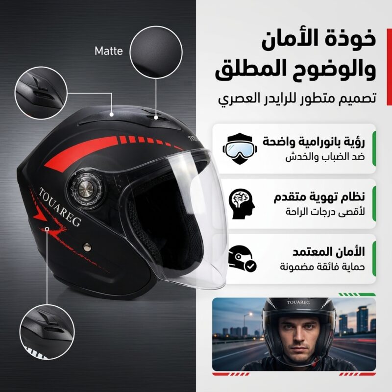 Casque Moto Jet TOUAREG – Visor Large Anti-Buée | Design Sport Premium